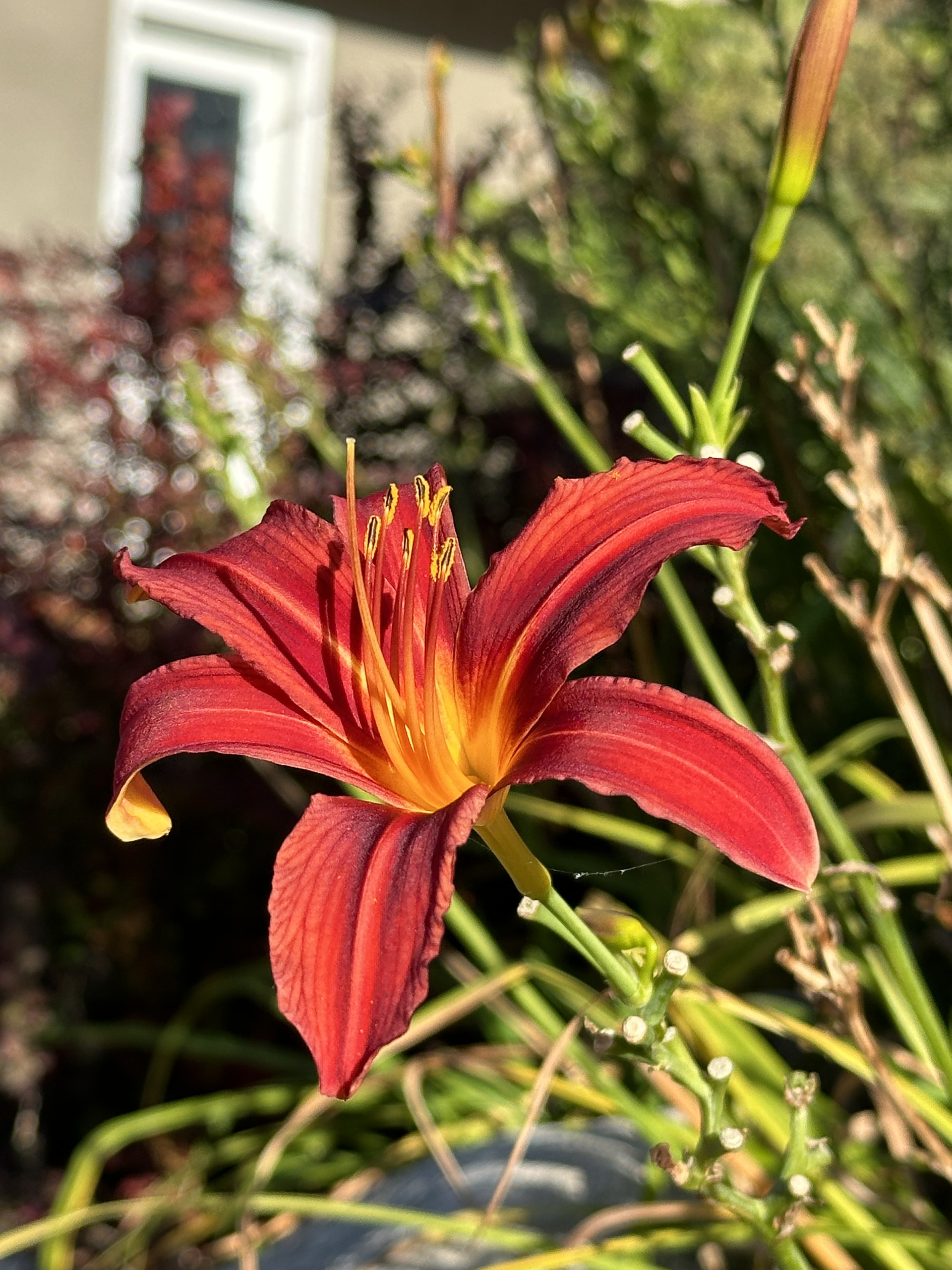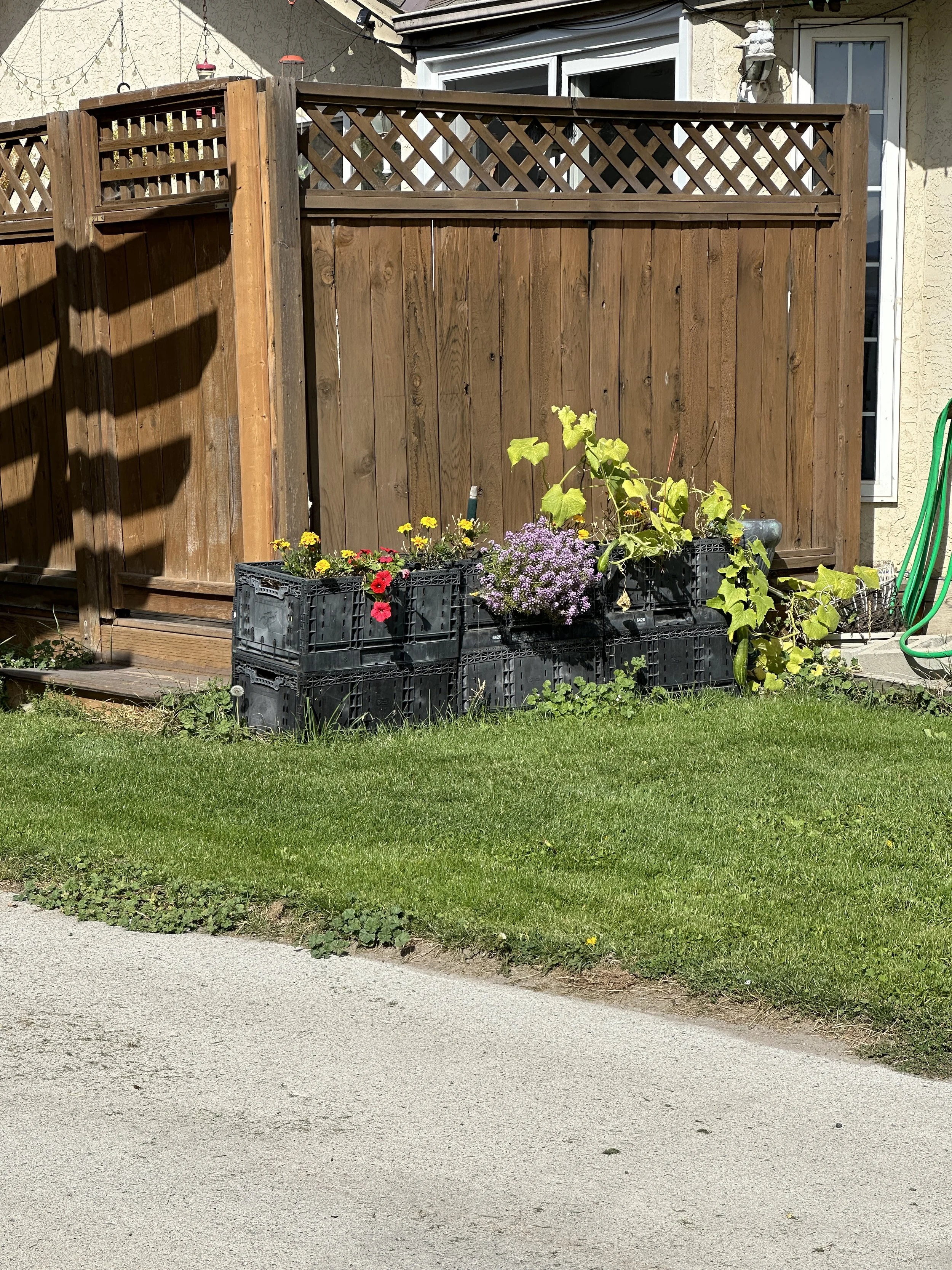 Another walk on a sunny afternoon. There is a house in the complex that always has a. beautiful garden that we like to stop and admire. He’s got these vibrant red and yellow flowers that I wanted to try sketching and then I noticed the flowers and black planters off to the side and I thought the juxtaposition of the flowers to the black plastic was interesting.