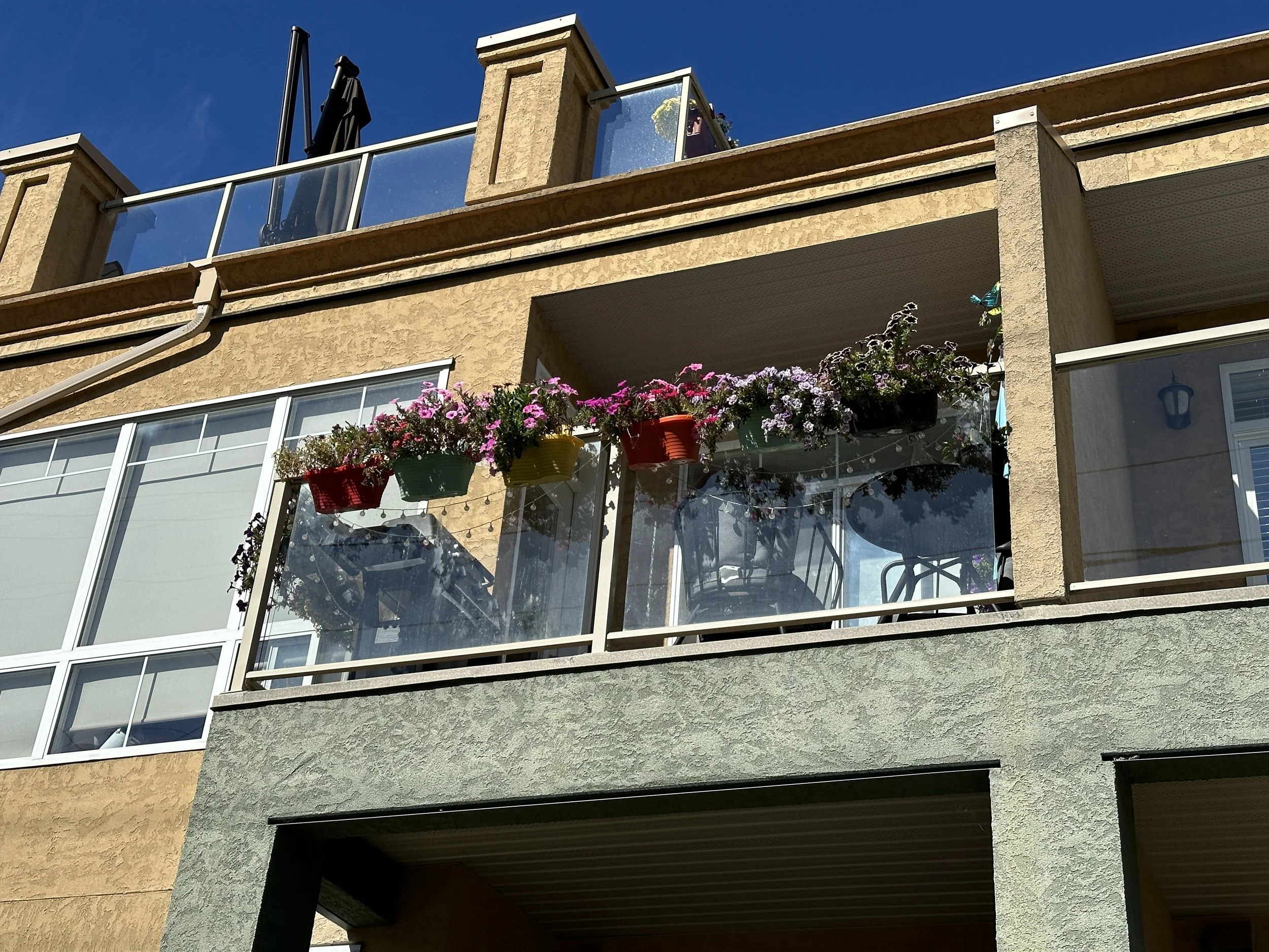 I always love this balcony on the way to the park. I have this idea to create a background pulling colors of the planters with some flower sketches overtop.